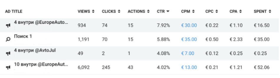 3. Трафик запускали как внутри каналов, так и на аудитории. То есть показывали рекламу подписчикам в других каналах, на которые они подписаны. Запускали трафик в поиске по ключевым словам.