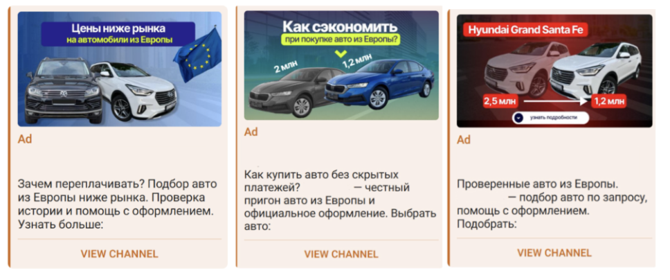- каналы с доставкой авто из других стран (Китай, Япония, Корея).