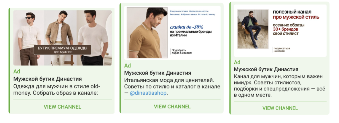 3. В объявлениях делали акценты на премиум-качество, итальянское происхождение брендов, сервис персонального fashion-консьержа и бонус для подписчиков канала.