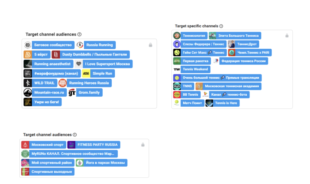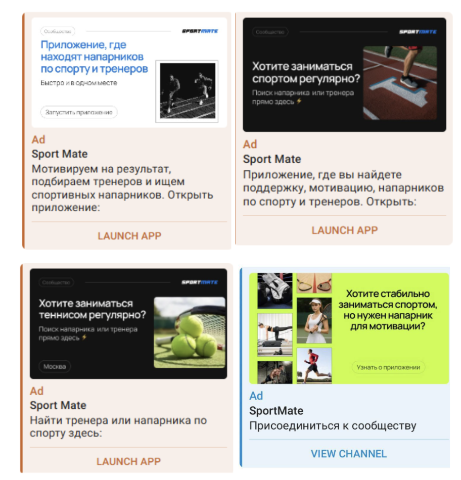 1. Разработали стратегию продвижения: собрали каналы по тематикам спорт, бег, фитнес, теннис. Выделили сегменты аудитории: тренеры, спортсмены, а также сегментировали аудиторию по видам спорта, чтобы протестировать на них отдельные креативы.
