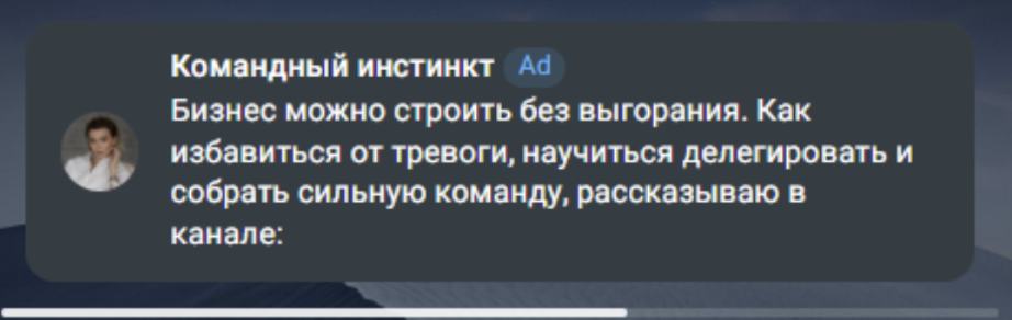 О проекте:Командный инстинкт — канал для собственников бизнеса и управленцев. В нём рассказывают, как выстроить команду, делегировать без тревоги и расти в доходе.