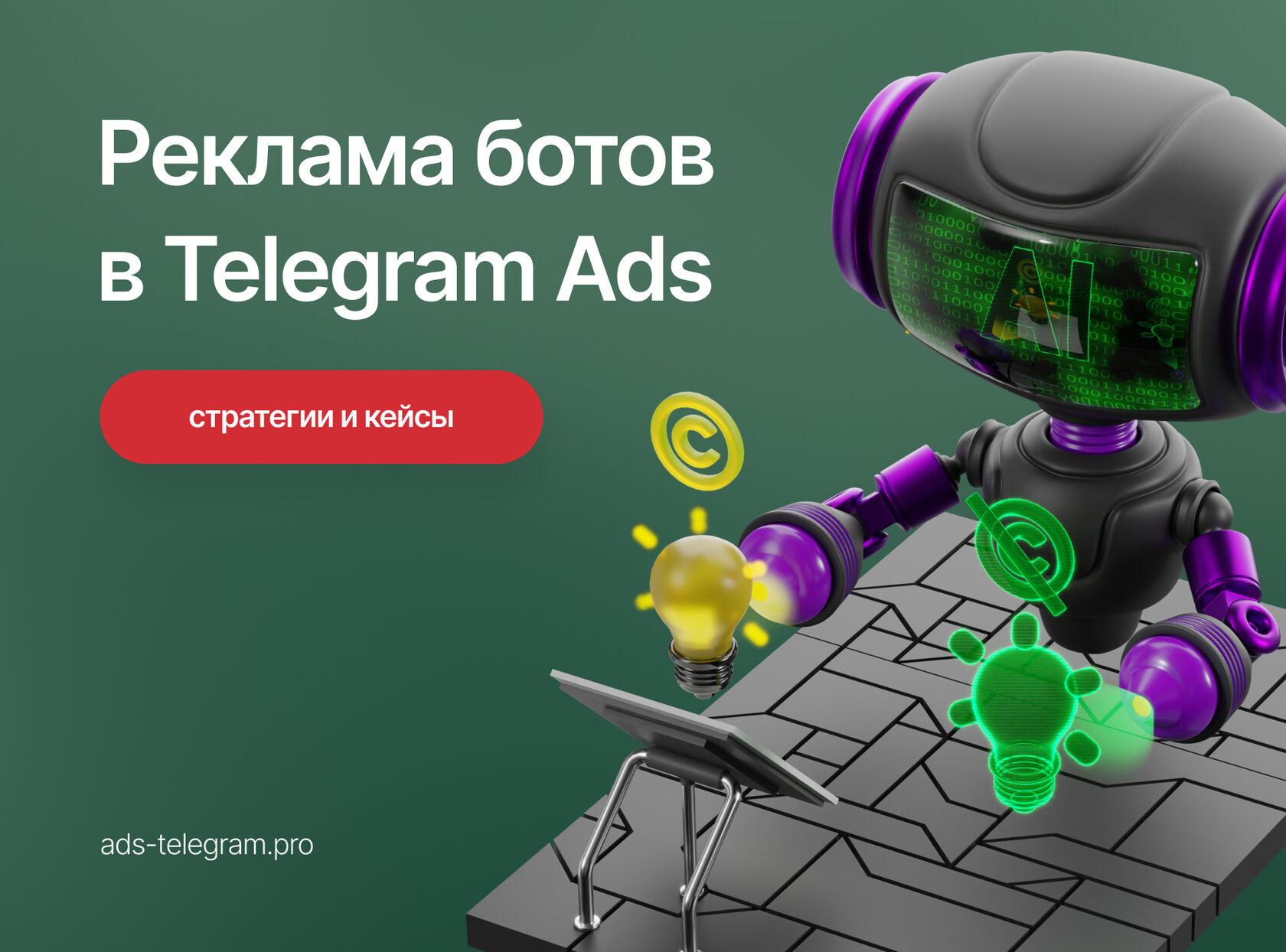 - Подготовили креативы для двух чат-ботов: нишевой бот и бот с топ-20 идеями.